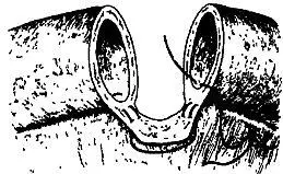 Рис. 18. Направление косого среза кишки при несоответствии просвета соединяемых концов.