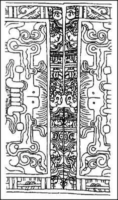 Следующей моей темой была пара силуэтов, «смотревших» друг на друга. Совместив изображение на оригинале с соответствующим изображением на копии, как предписывали правила игры, я понял, что отыскал одного из персонажей, которых недоставало еще на первом этапе дешифровки. Я нашел отсутствовавшего прежде партнера из первой божественной пары, жившей в «раю» Ометеотль, которого не мог отыскать во время первой интерпретации. Установление божественной пары первотворцов повлекло за собой появление трех сцен из мифологии майя, посвященной Созданию мира. В целом же эта работа навела меня на мысль, что, перемещая ацетатную копию, можно получать и другие картинки, помимо полученного ранее изображения божества — Летучей мыши.