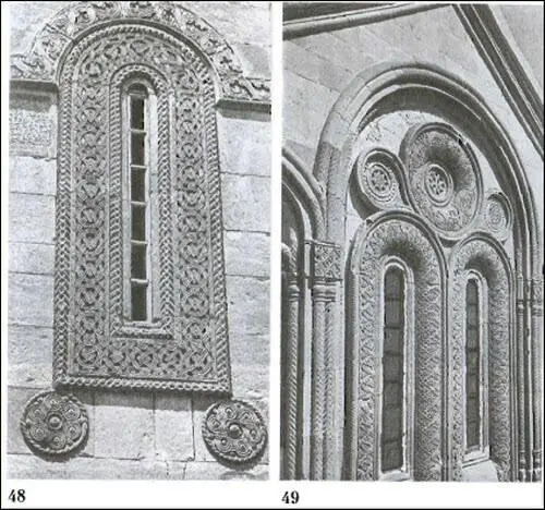 49. Храм в Самтавро, близ Мцхета. Резной убор южного окна. Первая половина XI в.