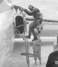 А.Г. Бесчастнов покидает кабину М-55 в аэропорту Виктория